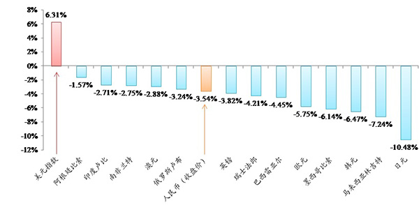 答:從數(shù)據(jù)看,人民幣在全球貨幣體系中仍表現(xiàn)出穩(wěn)定強勢貨幣特征。近期美元上漲較快,反映的是美國經(jīng)濟增長加快、通脹預(yù)期上升、美聯(lián)儲加息步伐可能明顯加快等美國國內(nèi)因素。而人民幣匯率對美元波動有所加大,主要是特朗普當選美國總統(tǒng)、美聯(lián)儲加息預(yù)期突然增強、英國“脫歐”、埃及鎊自由浮動等外部因素驅(qū)動。這些因素對世界各國而言都有些意外,資金回流美國推動美元指數(shù)迅速上漲、美國三大股指再創(chuàng)新高,全球貨幣普遍對美元貶值,有的跌幅還比較大。下一步美元走勢存在不確定性,不排除市場預(yù)期修正引發(fā)美元回調(diào)的可能。