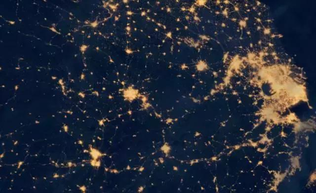 這份圖上,最閃亮的兩部分區(qū)域分別是珠三角和長(zhǎng)三角,這也是中國(guó)目前最為成熟的兩大城市群,而作為傳統(tǒng)三大城市群之一的京津冀除了北京、天津之外,其他都呈散點(diǎn)排列,至于新晉的中原等城市群,規(guī)模上還不明顯。