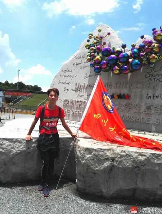 膝蓋、腳踝、胯部,各部位輪番用陣痛表達(dá)抗議,廖興睜眼躺在床上,看著標(biāo)準(zhǔn)間空蕩蕩的另一張床,覺得孤單,心想明天說什么也不跑了。這是廣西某縣城的賓館,他口中的“跑”是長跑,從成都到深圳,扛著校旗,全程1800公里。