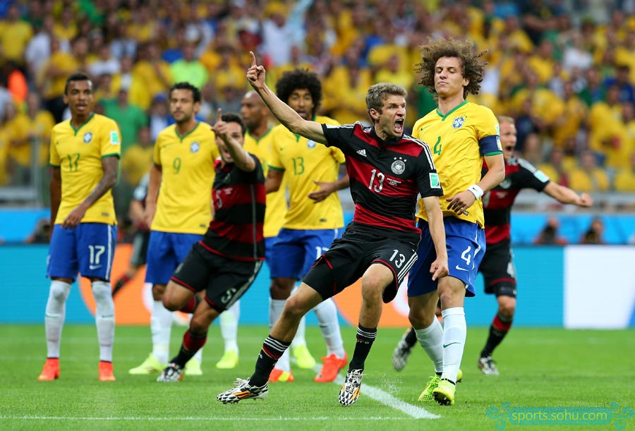 北京時間7月9日凌晨4時,2014年巴西世界杯首場半決賽在貝洛奧里藏特的米內(nèi)郎體育場進(jìn)行,東道主巴西迎戰(zhàn)上屆季軍德國。最終,德國隊?wèi){借在18分鐘內(nèi)連入5球的攻擊狂潮以及下半場許爾勒替補登場后的梅開二度,7-1超大比分淘汰巴西,昂首晉級決賽。第10分鐘,穆勒利用角球機會首開紀(jì)錄。第22分鐘,克洛澤門前兩連擊攻入世界杯第16球,超越羅納爾多,成為世界杯進(jìn)球第一人。第24分鐘和第25分鐘,克羅斯1分鐘內(nèi)連入2球。第28分鐘,赫迪拉又接厄齊爾傳球打進(jìn)一球。第68分鐘,許爾勒又接拉姆助攻,門前包抄打門得手。第79分鐘,許爾勒禁區(qū)左側(cè)小角度攻入世界波。第90分鐘,奧斯卡才攻入挽回顏面的一球。