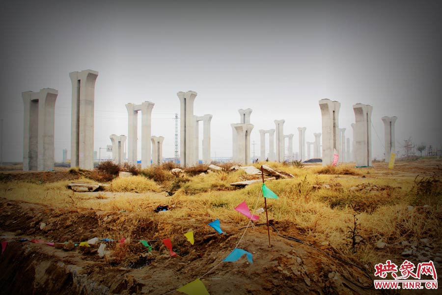 映象網訊(記者 王濤 巫曉 文/圖)“開放的工地,霧霾再厚重些,配以幾聲鳥鳴,或幾只尋食的烏鴉,這就是活生生的恐怖片,或者科幻片的鏡頭,在展示地球文明消失后的凄涼……”11月24日,有網友爆料稱,位于鄭州市南四環(huán)的京廣快速路南延工程已經停工數月,現場幾百根橋墩已經架起,場面甚是“震撼”。