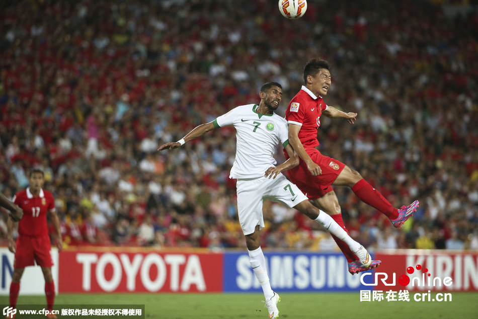 第21分鐘,中國隊前場反搶,于海和武磊打出快速反擊,于海強突橫傳門前,被沙特后衛(wèi)奧馬爾頭球解圍出底線。比賽進行到25分鐘之后,沙特隊更多的利用腳下技術(shù)的優(yōu)勢打出小范圍配合,不過中國隊整體防守較為嚴(yán)密,并且通過積極地防守打出快速反擊威脅對方球門。