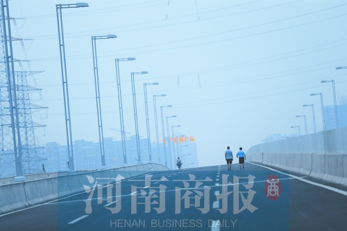 河南商報(bào)記者了解到,這一段高架橋?qū)儆诰V快速路二期南延工程穿過南三環(huán)京廣路立交的一部分,該橋面最高處距離地面22.94米。按照計(jì)劃,京廣快速路二期工程2014年年底前竣工,但如今京廣快速路二期南延工程仍未竣工。南邊道路未竣工,已建好的京廣快速路與南三環(huán)交叉的互通式立交橋橋面也就閑置了,成了市民休閑的好去處。據(jù)媒體報(bào)道,京廣快速路二期南延工程預(yù)計(jì)將于今年10月份全線通車。