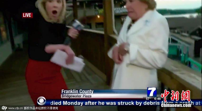 在沃德倒地前拍攝的畫面中,可以聽到槍聲,帕克和采訪對(duì)象在尖叫。畫面顯示,帕克和一名女性采訪對(duì)象正在一處陽臺(tái)上談及旅游業(yè)發(fā)展,槍手似乎從后面靠近。