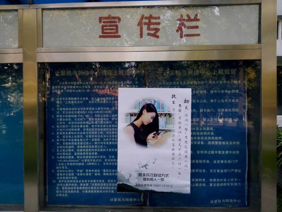 正值開(kāi)學(xué)季,中國(guó)傳媒大學(xué)驚現(xiàn)癡情男,張貼了數(shù)百?gòu)埡?bào)只為表白校花,據(jù)照片顯示,海報(bào)中有女孩側(cè)臉照片,還留下男生的聯(lián)絡(luò)方式,甚是精細(xì)。