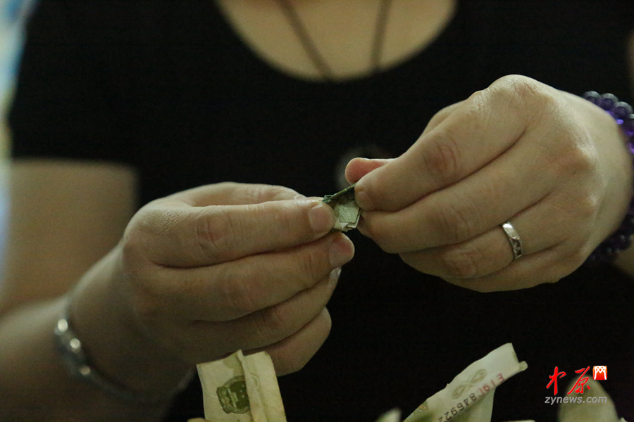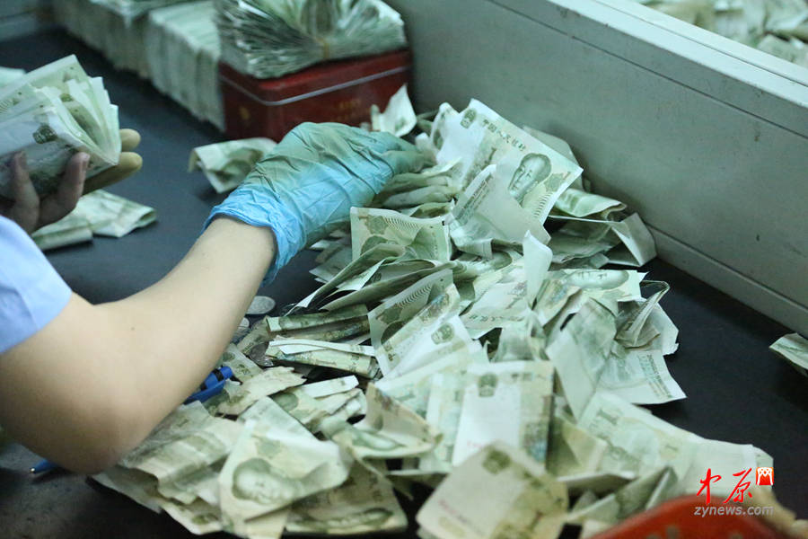 艾紅說,紙幣必須人工進行清點,因為折角、打卷的非常多,只有手工清點才能完成這份工作。還有人惡作劇,將紙幣里包上碎玻璃,有一次點鈔員在清理時,手指都被劃破了。