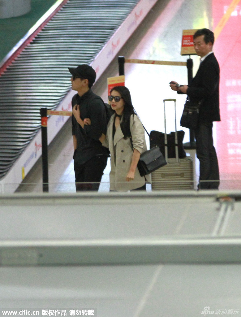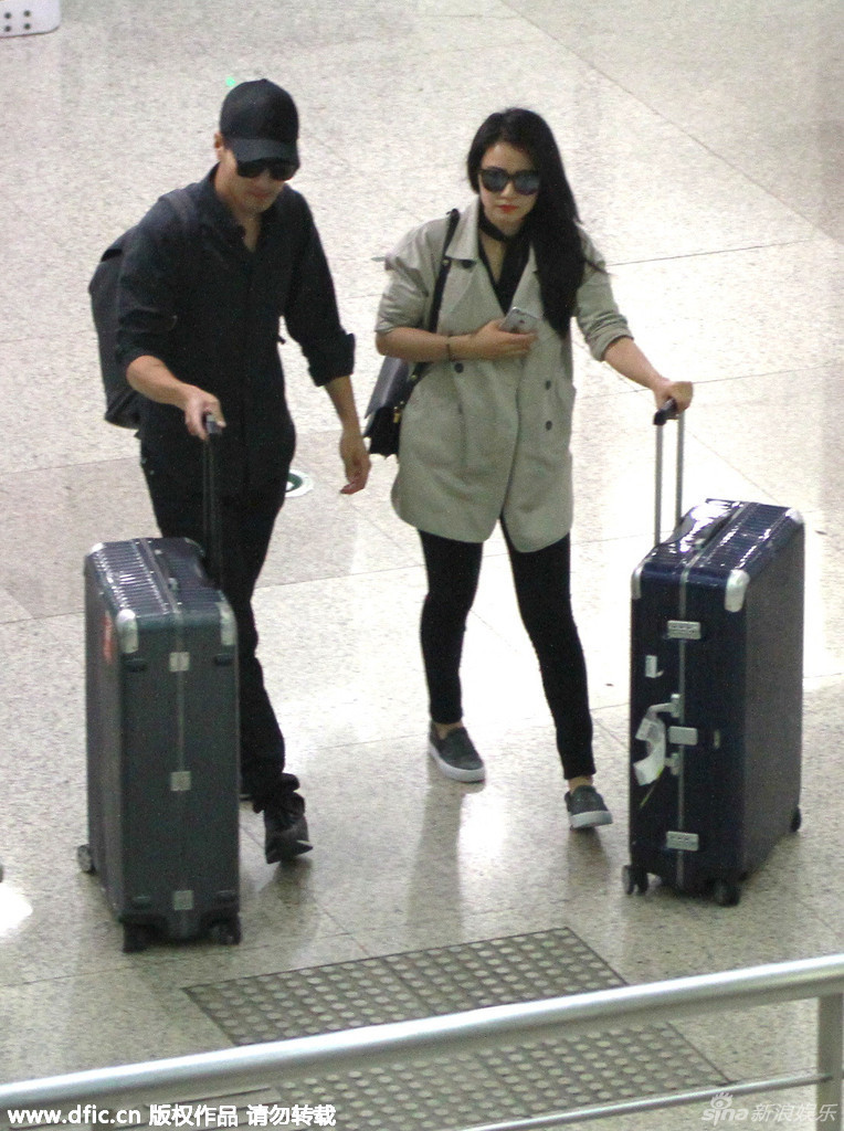 新浪娛樂訊 日前,高圓圓、趙又廷夫婦抵達浦東機場。兩人穿著黑白情侶裝墨鏡遮面,雖然低調但情意濃濃。高圓圓不時地挽著趙又廷的胳膊,讓周圍粉絲羨慕不已。