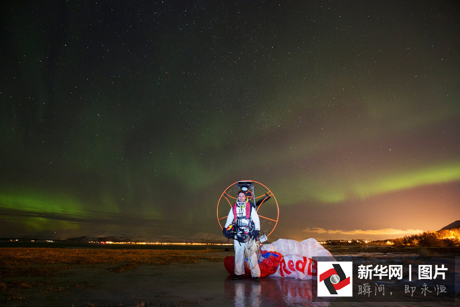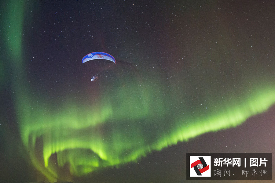 滑翔傘運(yùn)動員Horacio Llorens在挪威終于完成了一生的夙愿“與極光跳舞”,畫面非常震撼。圖片來源:視覺中國