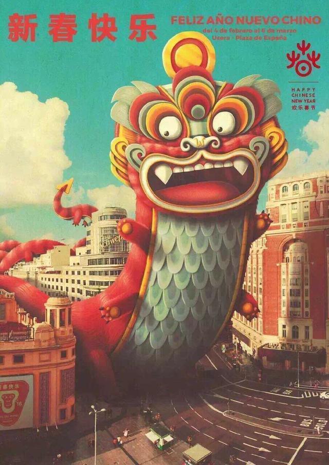 2月6日上午,有網(wǎng)友發(fā)布圖片,稱系西班牙馬德里市祝賀中國新年的海報,這畫風(fēng)你們自己感受下。