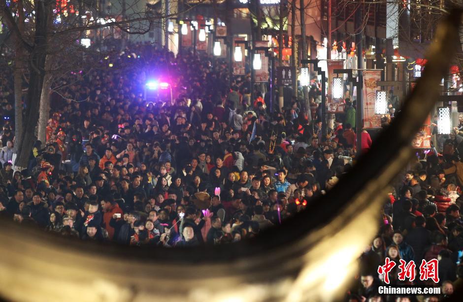 2月22日晚,南京夫子廟廣場上人山人海。當(dāng)日是元宵節(jié),數(shù)十萬市民和游客涌進(jìn)南京夫子廟景區(qū)內(nèi)欣賞秦淮燈會,瞬間開啟“人從眾”模式。秦淮燈會又稱“金陵燈會”,是流傳于南京地區(qū)的特色民俗文化活動,主要在每年的春節(jié)至元宵節(jié)期間舉行。 中新社記者 泱波 攝