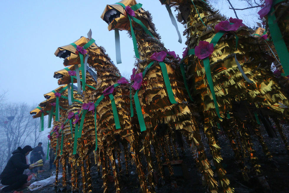 2016年2月23日凌晨,山東省濱州市惠民縣小霹靂莊,宋代古冢牛保冢上一年一度的正月十六祭祀活動(dòng)正式開始,方圓百里萬余百姓陸陸續(xù)續(xù)趕來祭祀,以求風(fēng)調(diào)雨順,家和事興。多種祭祀用紙馬先后被抬上祭壇引燃,化作火龍直沖云天,數(shù)量足有數(shù)千匹之多,場面壯觀且奇異,親臨現(xiàn)場宛若置身神鬼大片,令人印象深刻。