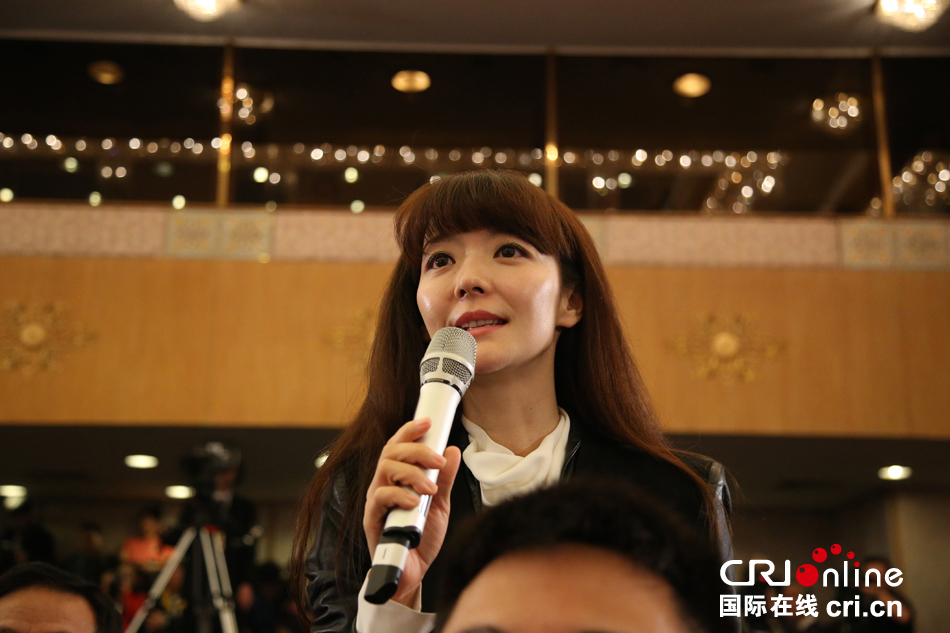 3月4日,全國人大發(fā)言人傅瑩面對記者揮手致意。