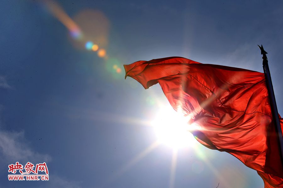 藍(lán)天白云下的紅旗飄飄 段晉哲/圖