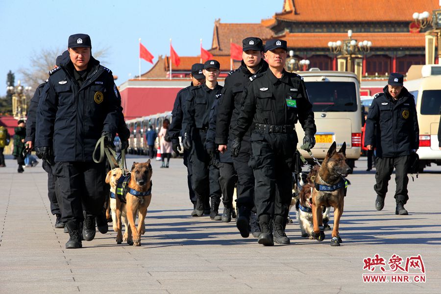 訓(xùn)練有素的警犬巡邏在廣場上 段晉哲/圖