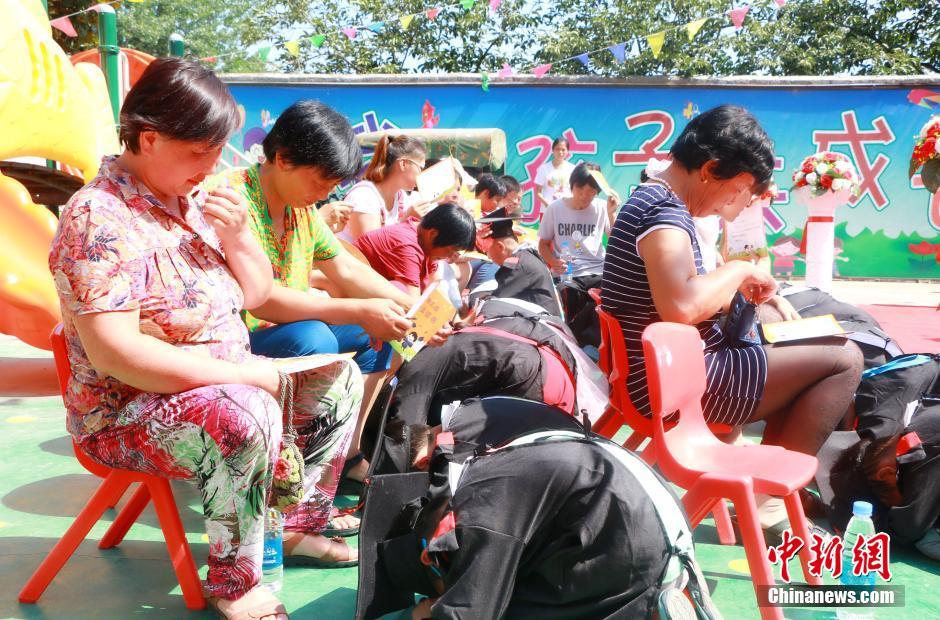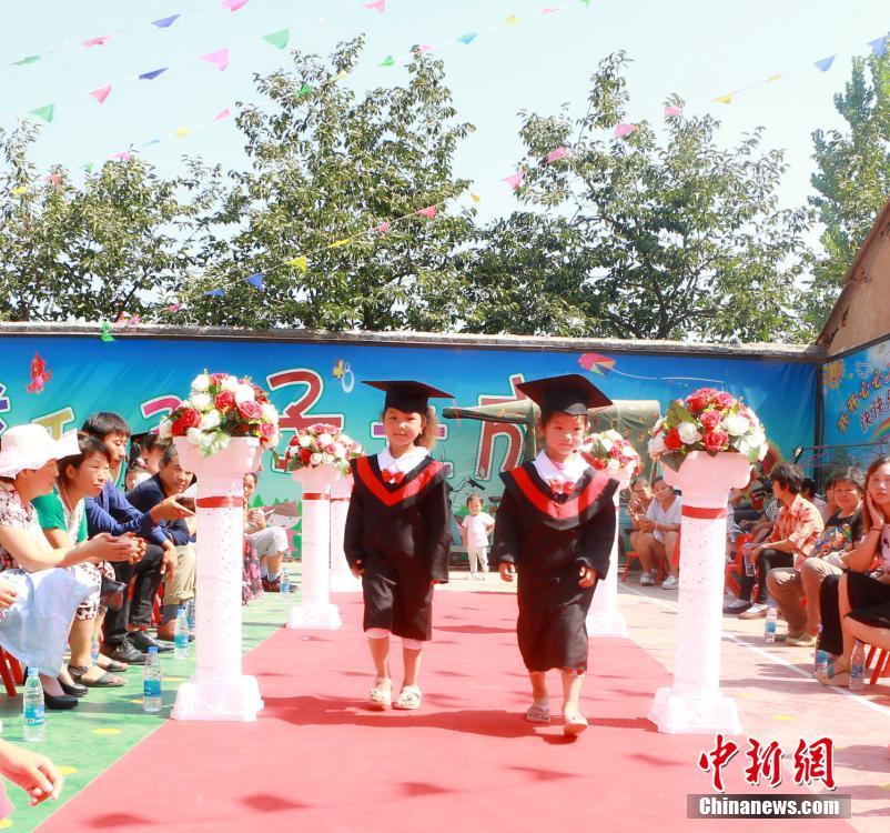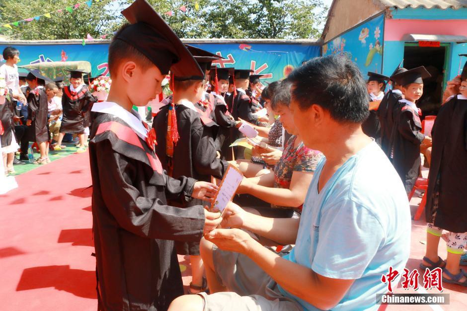 又到一年畢業(yè)季,6月20日,河南商水縣鄧城鎮(zhèn)留守兒童幼兒園60名孩子迎來了一場特殊的畢業(yè)典禮。孩子們身穿迷你學士服,自信地走紅毯、拋學士帽。在跪謝父母養(yǎng)育之恩的環(huán)節(jié),因為大部分孩子是留守兒童,孩子們只能跪謝爺爺奶奶的照顧,許多家長在現(xiàn)場感動落淚。葉青 攝