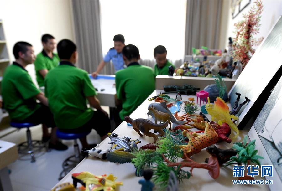 6月22日,河南省未成年人強制隔離戒毒所內的戒毒人員在心理治療室內做沙盤游戲。 新華社記者 李安 攝