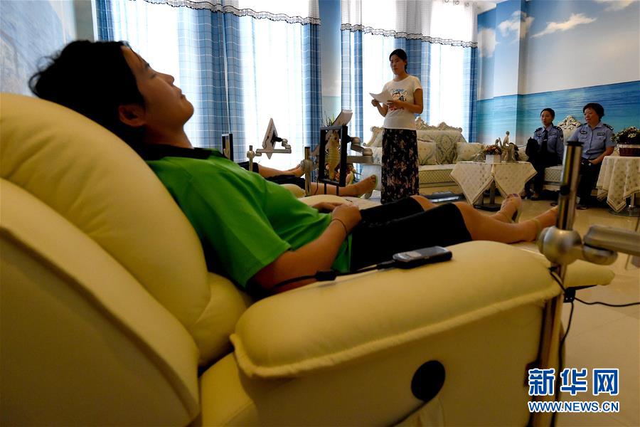 6月22日,河南省女子強制隔離戒毒所內的戒毒人員在心理治療室內接受心理輔導。 新華社記者 李安 攝