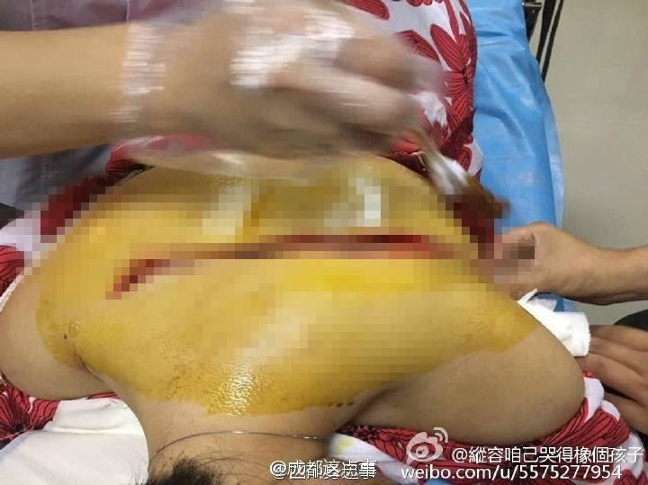 7月4日下午,有成都網(wǎng)友發(fā)微博稱,1日晚上9點(diǎn)過(guò),她同朋友經(jīng)過(guò)成都龍泉驛區(qū)航天北路美食街時(shí),被一名騎自行車的陌生男子劃傷背部,傷口長(zhǎng)度達(dá)32厘米,深度3公分左右。隨后,被人送往附近醫(yī)院治療。