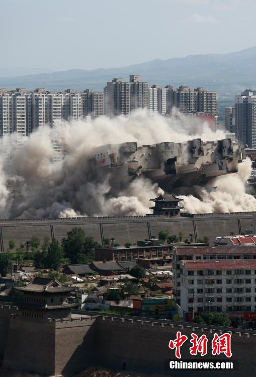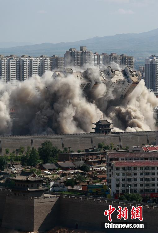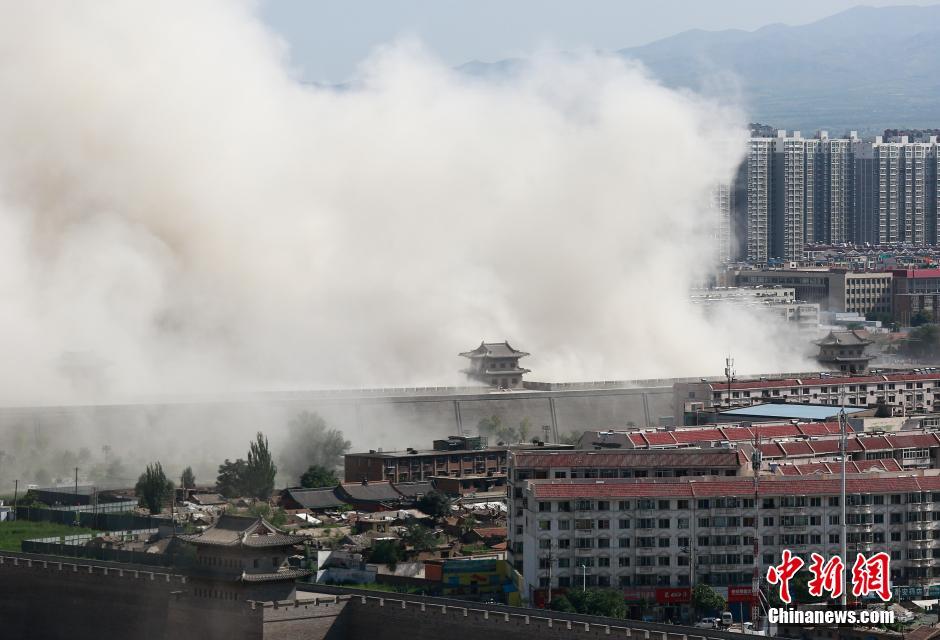 8月8日,山西大同,當(dāng)?shù)卣畬?duì)位于北城墻武定西門外的一座90米高的大樓實(shí)施爆破拆除,飛揚(yáng)的塵土與古城墻呼應(yīng)形成壯觀場(chǎng)面。由于該樓位置與古城保護(hù)規(guī)劃有所沖突,當(dāng)?shù)卣畬?duì)其實(shí)施爆破,以此加快古城的保護(hù)與復(fù)興。 楊榮 攝