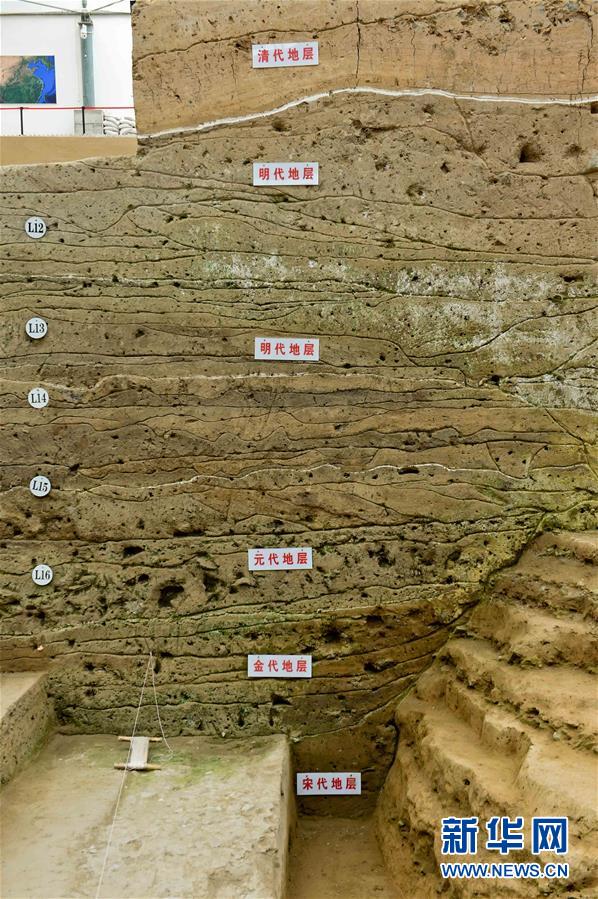 8月25日,在河南省開(kāi)封市新鄭門遺址發(fā)掘現(xiàn)場(chǎng),考古人員已揭露出宋代至清代10多層密集疊壓在一起的道路。