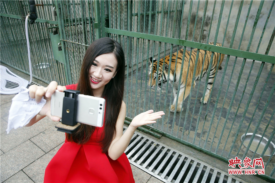 目前兩只華南虎都在圈養(yǎng)中,13日上午,為了一睹華南虎的芳容,映象網(wǎng)一點(diǎn)紅,開啟了動(dòng)物園直播首秀,現(xiàn)場(chǎng)實(shí)時(shí)“采訪”了其中一只“國(guó)寶”虎妞,身處鐵柵欄籠舍的虎妞,看到很多“觀眾”拿著設(shè)備對(duì)著它拍攝,絲毫沒有害怕的樣子,甚至隔著鐵柵欄跟“觀眾”互動(dòng),彰顯其虎虎生威的霸氣。在美女主播Sasa清新、平易近人的直播中,短短數(shù)分鐘,實(shí)時(shí)關(guān)注量達(dá)到892人。動(dòng)物園的負(fù)責(zé)人,對(duì)于首次的直播傳播方式,覺得很新穎、奇特。