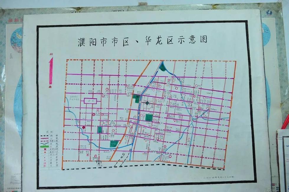 于是,76歲的他開(kāi)始白天騎車(chē)走街串巷,沿途掏出紙和筆進(jìn)行勾勒、記錄,標(biāo)注街道、商鋪、路線,畫(huà)出簡(jiǎn)易地圖;晚上,他就從廚房拿出面板,當(dāng)作繪圖板認(rèn)真畫(huà)圖。就這樣,他利用兩年時(shí)間,繪制完成市區(qū)主要單位商鋪示意圖、華龍區(qū)主要單位商鋪示意圖、濮陽(yáng)市道路交通圖等4張地圖,成為當(dāng)前濮陽(yáng)市最新地圖。