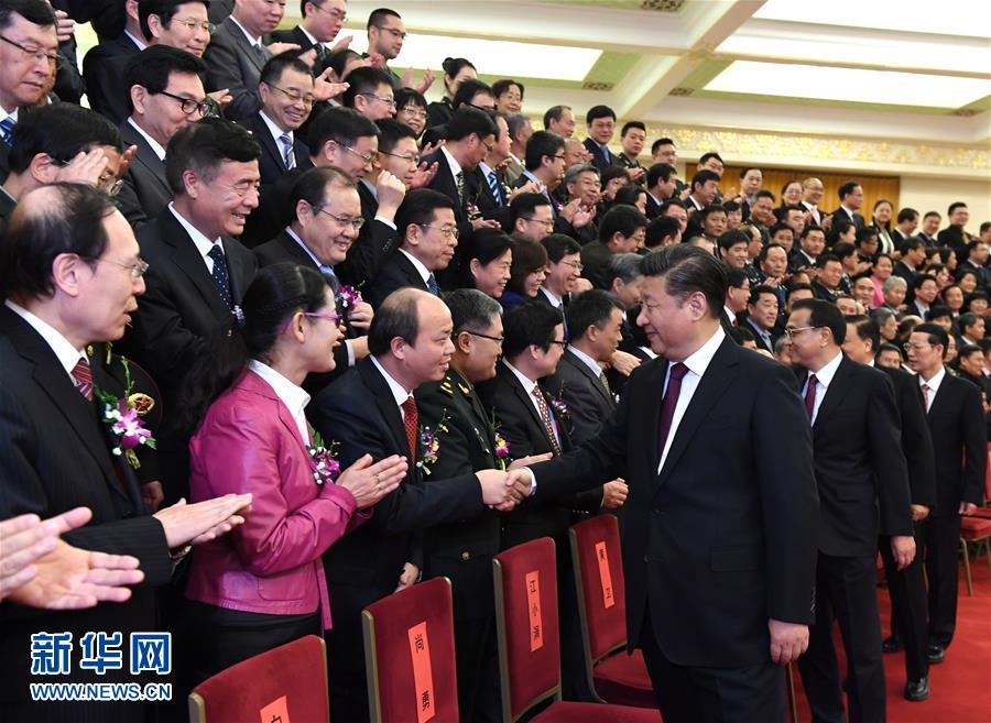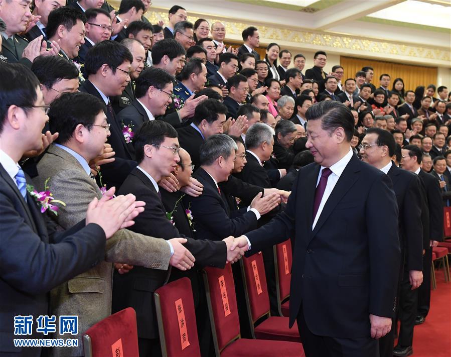 1月9日,2016年度國家科學技術(shù)獎勵大會在北京人民大會堂隆重舉行。黨和國家領(lǐng)導(dǎo)人習近平、李克強、劉云山、張高麗等出席大會并為獲獎代表頒發(fā)獎勵證書。會前,習近平等黨和國家領(lǐng)導(dǎo)人會見獲獎代表。新華社記者 李學仁 攝