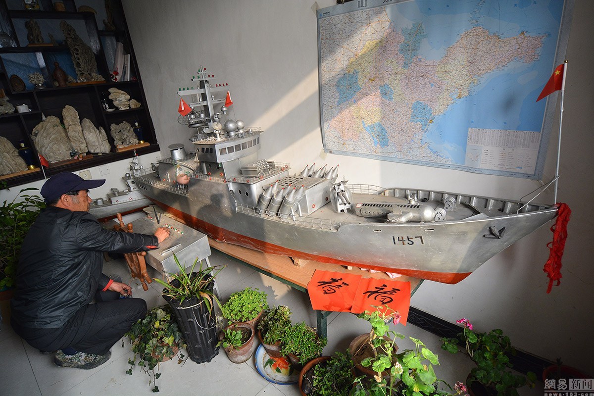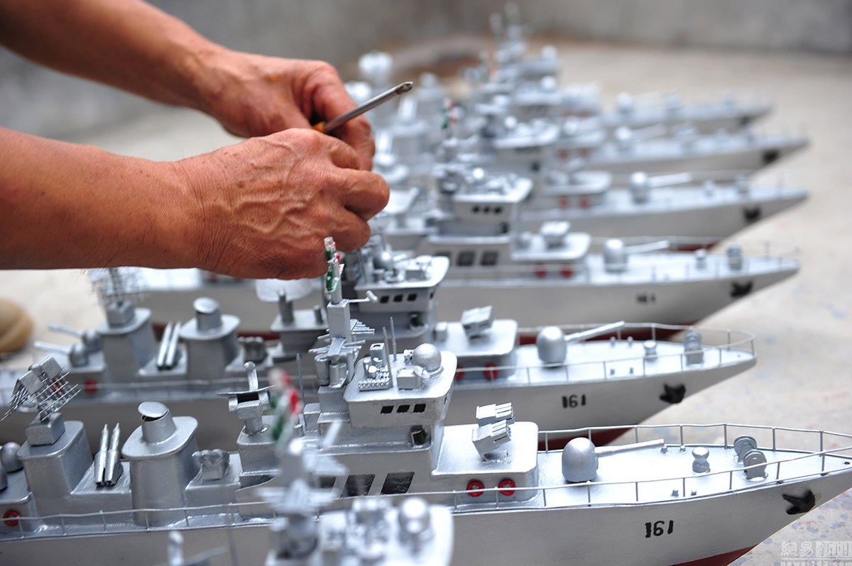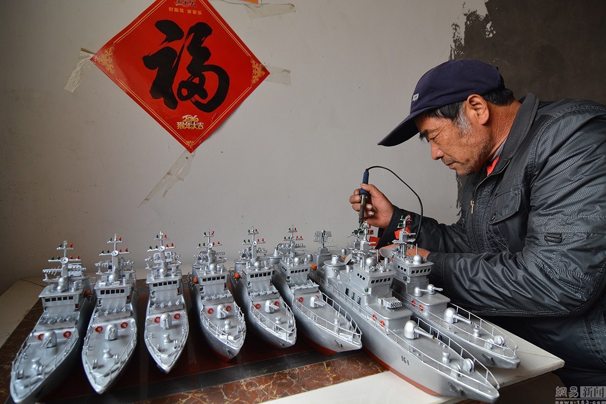 1月9日,今年59歲的郭長海,是山東省日照市山海天旅游度假區(qū)肖家村一位普通的漁民。從2005年開始,他自己純手工制作“軍艦”模型,可以說是到了癡迷的程度。十幾年來,他先后花費(fèi)近6萬多元人民幣,造出了7艘可實現(xiàn)模擬槍炮發(fā)射的“軍艦”模型,十幾艘小軍艦?zāi)P?。幾年來,因為他的癡迷,郭長海也成為網(wǎng)絡(luò)、報紙、電視,以及自媒體等關(guān)注報道的對象,成為“網(wǎng)紅”。