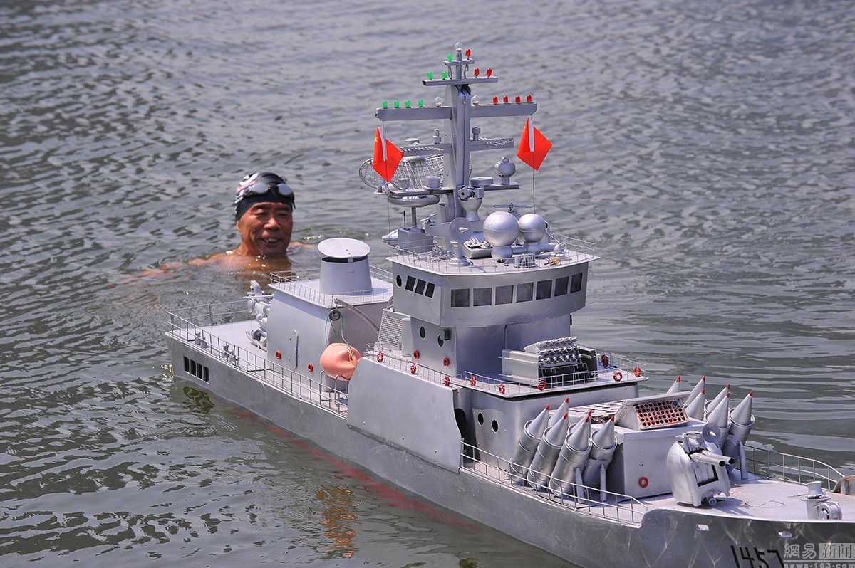 十幾年來,他先后成功的造出了“導(dǎo)彈驅(qū)逐艦”2艘,“巡洋艦”4艘,“導(dǎo)彈護(hù)衛(wèi)艦”1艘。2014年12月13日,郭長海將半年時間打造的新作“導(dǎo)彈護(hù)衛(wèi)艦”拉到村里的大街上向村民展示,這艏長3.07米,高1.2米,寬約0.8米的“導(dǎo)彈護(hù)衛(wèi)艦”在他的遙控指揮下,成功實現(xiàn)了陸地上的前進(jìn)、后退、左右拐彎,并可模擬槍炮發(fā)射火藥的效果。為了驗證水上功夫,2015年8月13日,郭長海在日照奧林匹克水上公園龍舟碼頭,為“導(dǎo)彈護(hù)衛(wèi)艦”進(jìn)行試航,經(jīng)過半個多小時的調(diào)試,最終試航成功。連續(xù)兩年在眾人面前的試驗,均獲得成功,這大大增強(qiáng)了他的信心。
