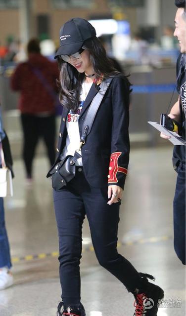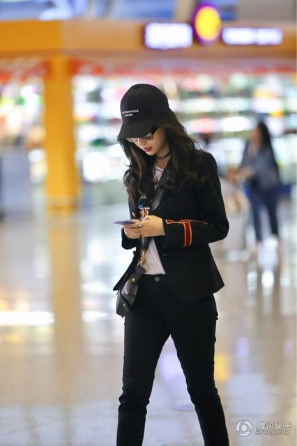 騰訊娛樂訊 23日下午,Angelababy現(xiàn)身上海機場,一身紅黑拼色西裝讓Baby看起來十分帥氣有型。