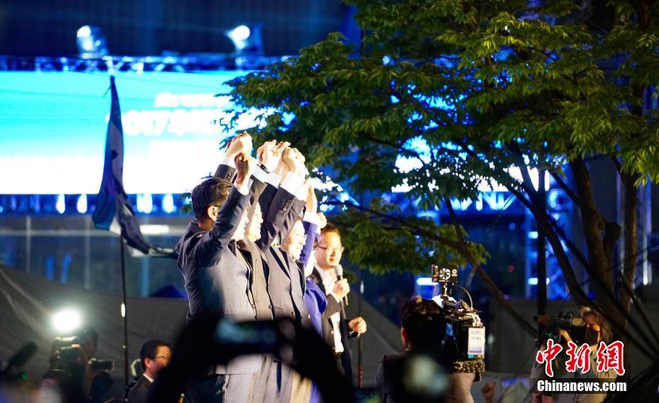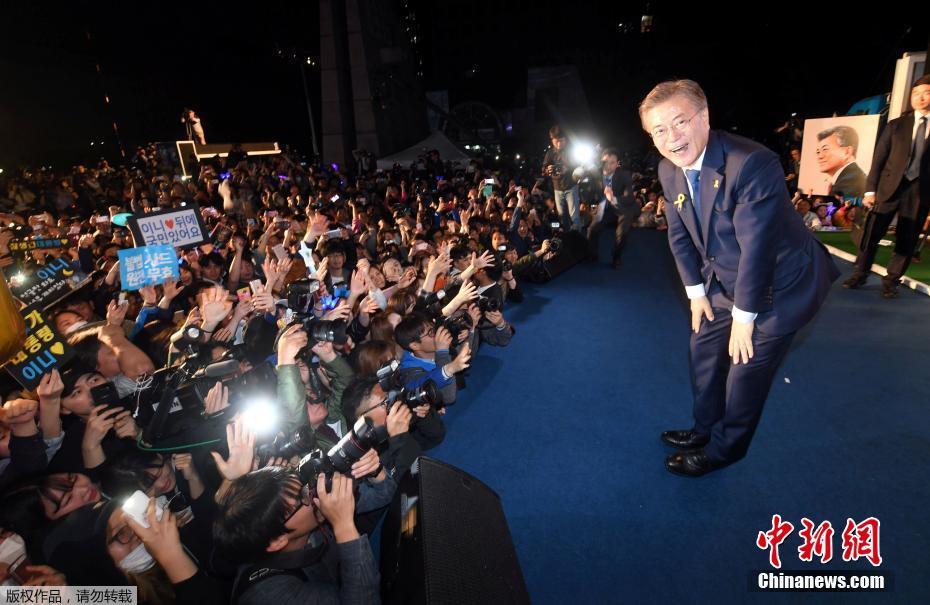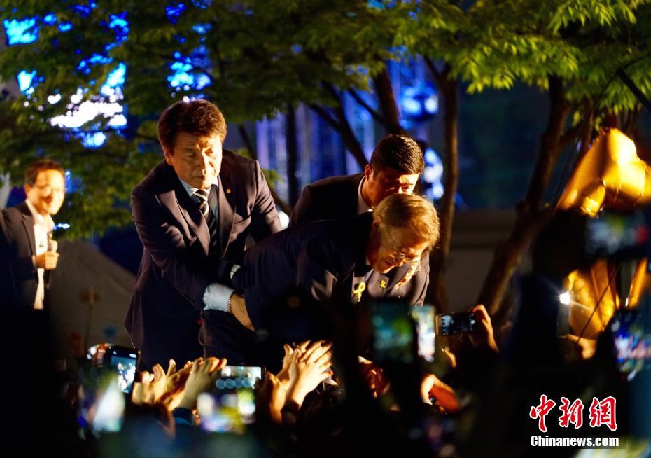 當地時間5月9日深夜,韓國第19屆總統(tǒng)選舉共同民主黨候選人文在寅及其競選團隊現(xiàn)身首爾光化門廣場,發(fā)表“勝選演說”,與支持民眾握手慶祝。據出口民調顯示,文在寅在當日進行的大選投票中以41.4%的支持率絕對優(yōu)勢勝選。在選舉管理委員會公布的大部分開票結果中,文在寅得票率也遙遙領先,提前鎖定勝局。