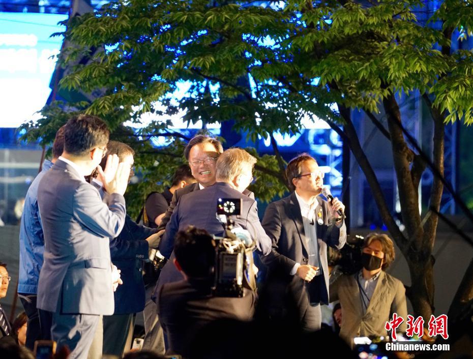 當地時間5月9日深夜,韓國第19屆總統(tǒng)選舉共同民主黨候選人文在寅及其競選團隊現(xiàn)身首爾光化門廣場,發(fā)表“勝選演說”,與支持民眾握手慶祝。據出口民調顯示,文在寅在當日進行的大選投票中以41.4%的支持率絕對優(yōu)勢勝選。在選舉管理委員會公布的大部分開票結果中,文在寅得票率也遙遙領先,提前鎖定勝局。 中新社記者 吳旭 攝