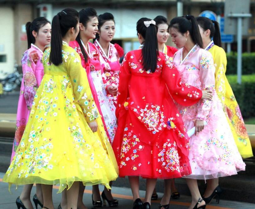 朝鮮餐廳的服務(wù)員在表演歌舞。
