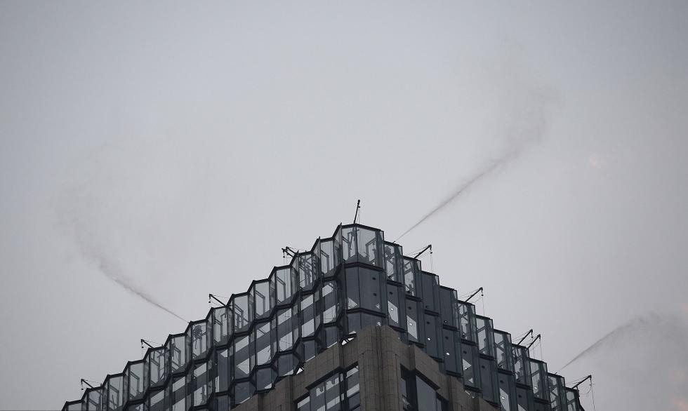 記者注意到,水霧來源于草叢中的多個隱形噴頭。這項讓天府廣場有些“仙味兒”的變化,正是成都推進大氣污染防治科技治霾的新動作——打開這個名為“超細清水霧系統(tǒng)”的除霾裝置,可以降解距離地面10米以內的漂浮揚塵顆粒物,起到除霾、降塵、降溫、增加空氣濕度、增加負氧離子的作用。