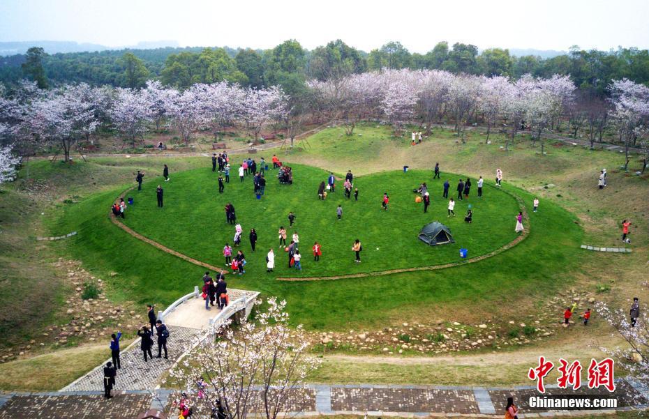 3月17日,游客在江西南昌鳳凰溝景區(qū)游玩。連日來,江西南昌鳳凰溝萬株櫻花盛放,形成延綿萬米的櫻花隧道,場面極為壯觀,前來賞花的游人絡(luò)繹不絕。圖為“心形”草坪與櫻花交相輝映,畫面十分唯美。