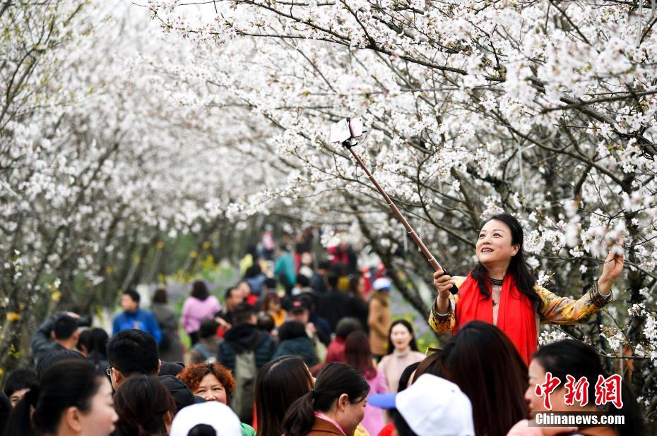 江西南昌鳳凰溝櫻花盛放,形成延綿萬米的櫻花隧道,場面極為壯觀,游人絡(luò)繹不絕。 鮑贛生 攝