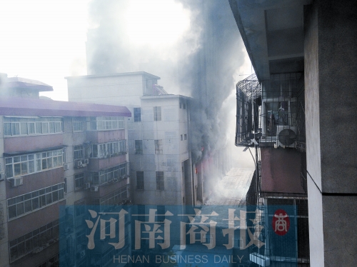 昨天早上,鄭州市經(jīng)五路與緯五路交叉口附近原河南服裝進(jìn)出口集團(tuán)院內(nèi)一棟5層大樓失火。失火大樓上有“鄭州嘉寶服飾有限公司”的字樣。