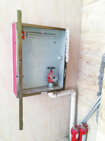 鄭州金印陽光城小區(qū)里,一個(gè)消火栓箱里空空如也,銹跡斑斑。
