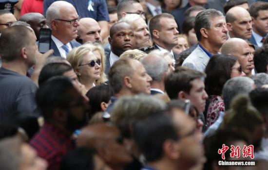 資料圖:當?shù)貢r間9月11日,“911”15周年紀念活動在美國紐約911紀念公園舉行,圖為美國民主黨總統(tǒng)候選人希拉里出席當天的紀念活動。 中新社記者 廖攀 攝