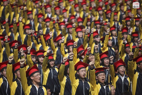 在一則2014年衡水中學高考百日誓師大會的視頻中,學生們聲音嘶啞地大喊著“專注、投入!”“我行!我行!我行!”,情緒極為高亢投入。