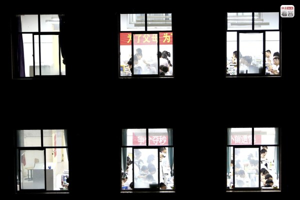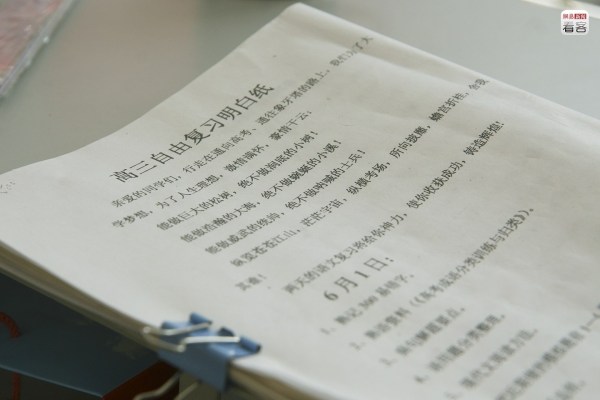 時間在這里被精確分配到每一分鐘,生活則是一場接一場的考試。每個學生都在高考“指揮棒”下被題海戰(zhàn)術(shù)“擰緊了發(fā)條”,像陀螺般高速旋轉(zhuǎn)。