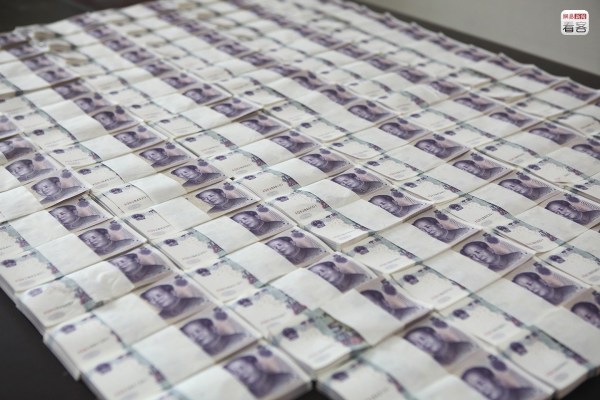 學校的另一項解壓措施是發(fā)放“回頭錢”,向每名學生發(fā)兩張五元紙幣,寓意“五谷豐登”、“十全十美”。圖為2012年6月3日,一位老師拿著一沓新紙幣準備發(fā)給學生。