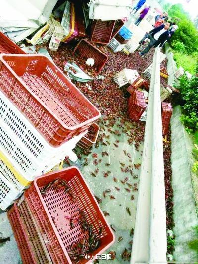 本報訊(記者魏娜 通訊員徐文匯)昨日中午,1輛滿載小龍蝦的貨車在漢宜高速上側翻,2000余公斤小龍蝦撒了一地。高速公路附近的村民聞訊趕來,拿著蛇皮袋、竹筐搶小龍蝦,車老板急了,攔住這個、跑了那個,手忙腳亂。高速交警和派出所民警及時趕來控制現(xiàn)場,保住大半的小龍蝦。