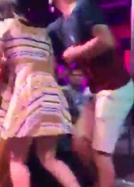 似乎在臺下的女友這時沖上臺,將舞女推倒在地,并拉走男子。
