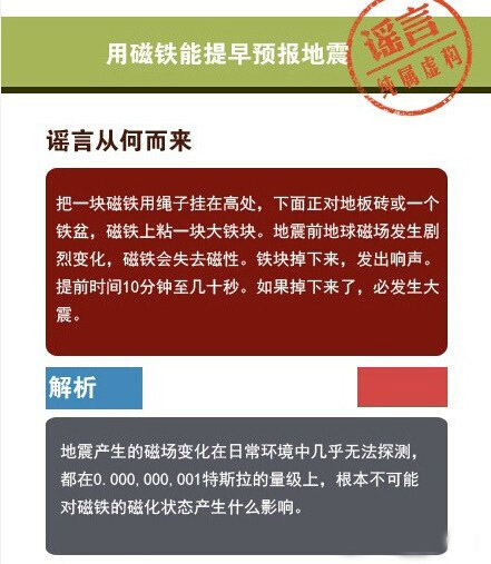 動物、磁鐵可以預(yù)報(bào)地震、地震生命金三角可救命、土豆促進(jìn)身體康復(fù)、淋涼水可以復(fù)活假死人……這些曾經(jīng)轉(zhuǎn)發(fā)過萬的“常識”都是謠言!
