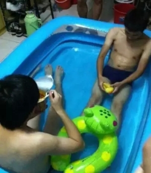 對于沒有空調(diào)的宿舍,夏天是最難熬的??磥頌榱吮苁?,童鞋們想盡了各種奇葩招數(shù)??!宿舍居然還有泳池!!很清涼?。。∮心居校。?!