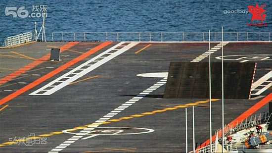 環(huán)球網(wǎng)1月4日?qǐng)D片:“瓦良格”號(hào)航母平臺(tái)上安裝了著艦攔阻索