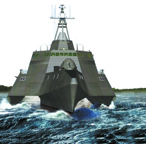 從軍事角度上來(lái)說(shuō),獨(dú)立級(jí)是第一種以實(shí)戰(zhàn)為目的三體艦艇。三體艦的設(shè)計(jì)可以在較小排水量的條件下,帶來(lái)更大的甲板面積,這對(duì)瀕海戰(zhàn)斗艦有著獨(dú)特的意義。因?yàn)槊绹?guó)海軍要求這種新型艦艇不但可以在近海進(jìn)行海戰(zhàn),還要具備相當(dāng)?shù)倪\(yùn)輸能力,能夠有同時(shí)操作兩架直升機(jī)的大型甲板。