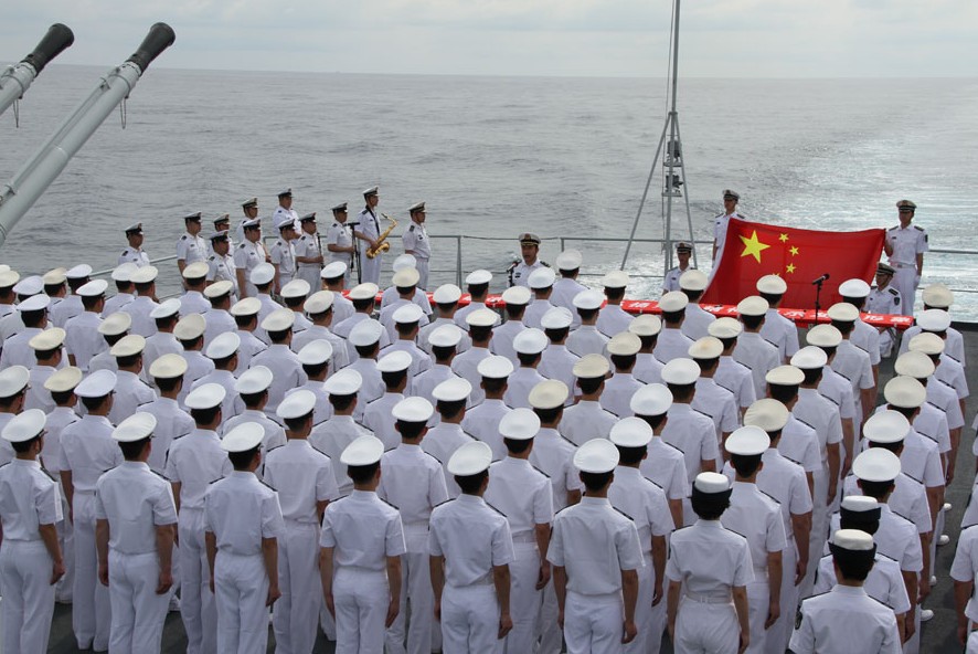 蔚藍(lán)的天空、湛藍(lán)的大海,當(dāng)金色的陽(yáng)光鋪滿艦體,軍樂隊(duì)奏響雄壯的中華人民共和國(guó)國(guó)歌,在后甲板整齊列隊(duì)的“鄭和”艦官兵代表舉起右手,面向國(guó)旗莊嚴(yán)宣誓,表達(dá)他們對(duì)人民海軍的忠誠(chéng)和熱愛。