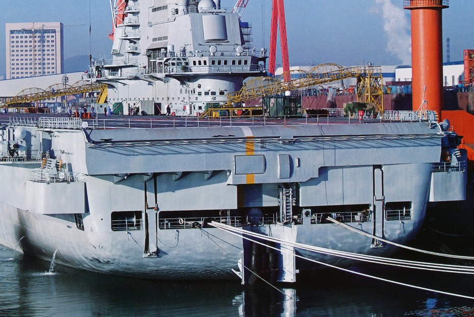 正在大連改裝的瓦良格號又有新圖片放出。從艦尾拍攝的圖片非常少見,從圖片上可以看出瓦良格號甲板上工作人員還在忙碌進行改裝工作。(鼎盛軍事海帆供圖)